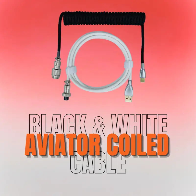 Upgrade your desk setup with the Black & White Aviator Coiled Cable for your Mechanical Keyboards, a perfect fusion of function and flair. Designed for mechanical keyboard enthusiasts, this high-quality coiled cable offers premium build, universal compatibility, and vibrant aesthetics to elevate your workspace or gaming setup.