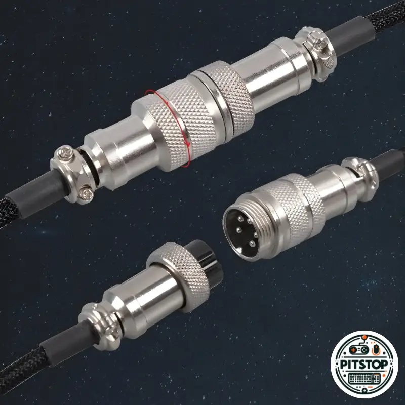Crafted from braided wire and PU, this cable features a durable double-sleeved construction with woven mesh + PET mesh for long-term resilience and style. The aviator connector not only adds a retro-industrial vibe to your keyboard setup but also makes swapping cables and accessories quick and effortless.